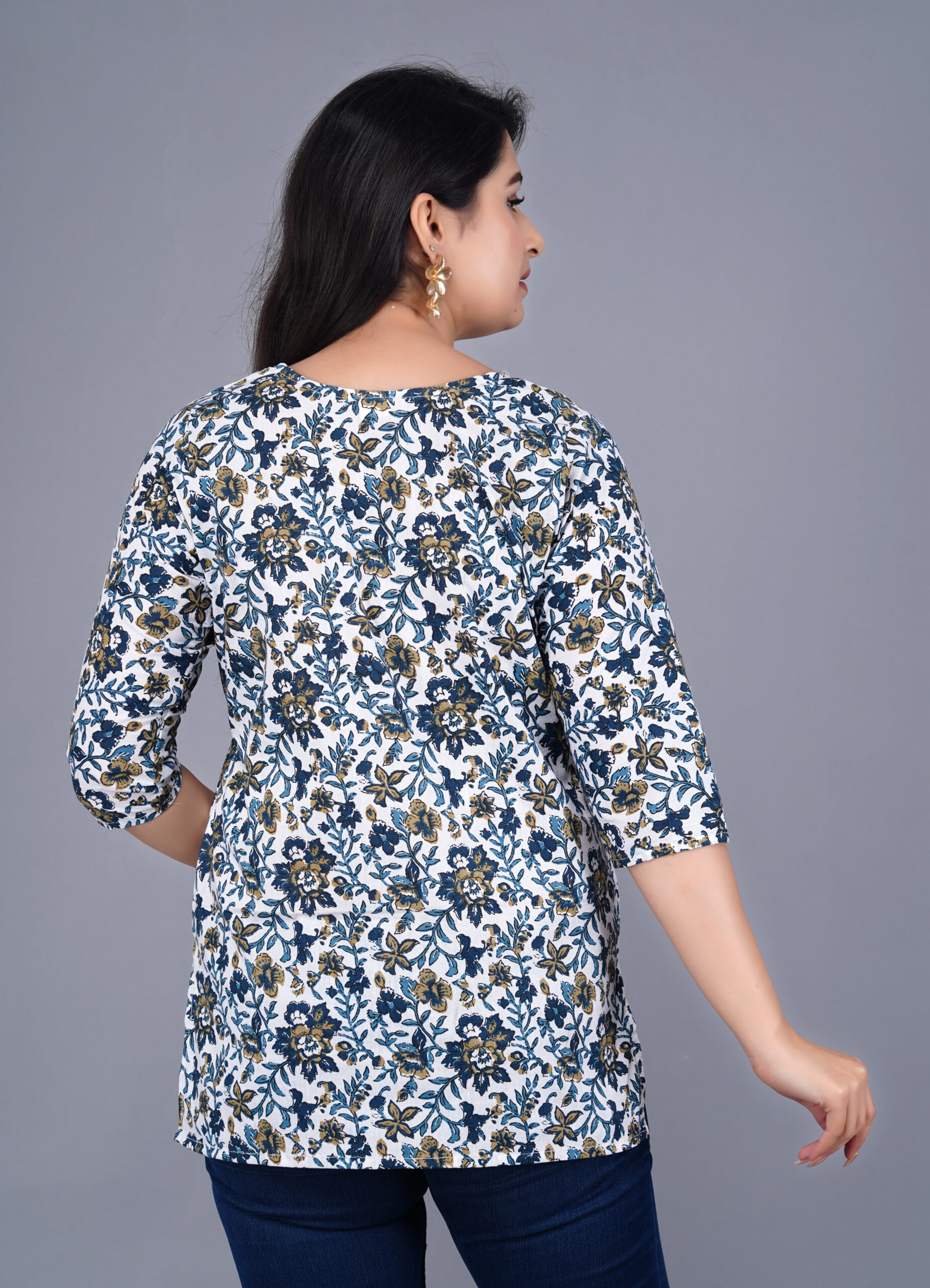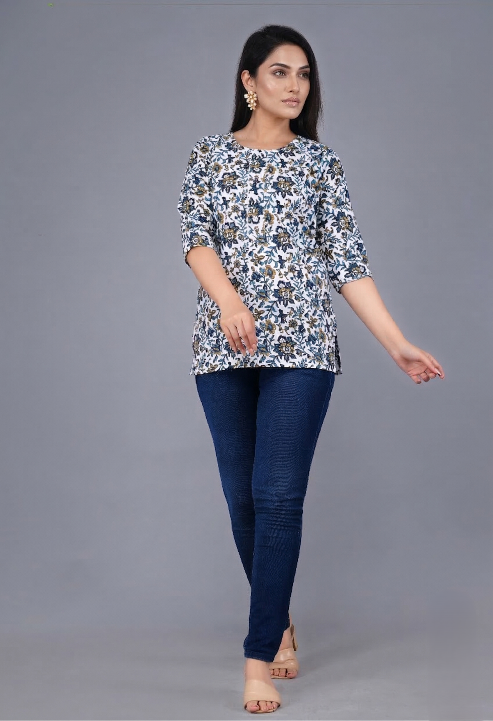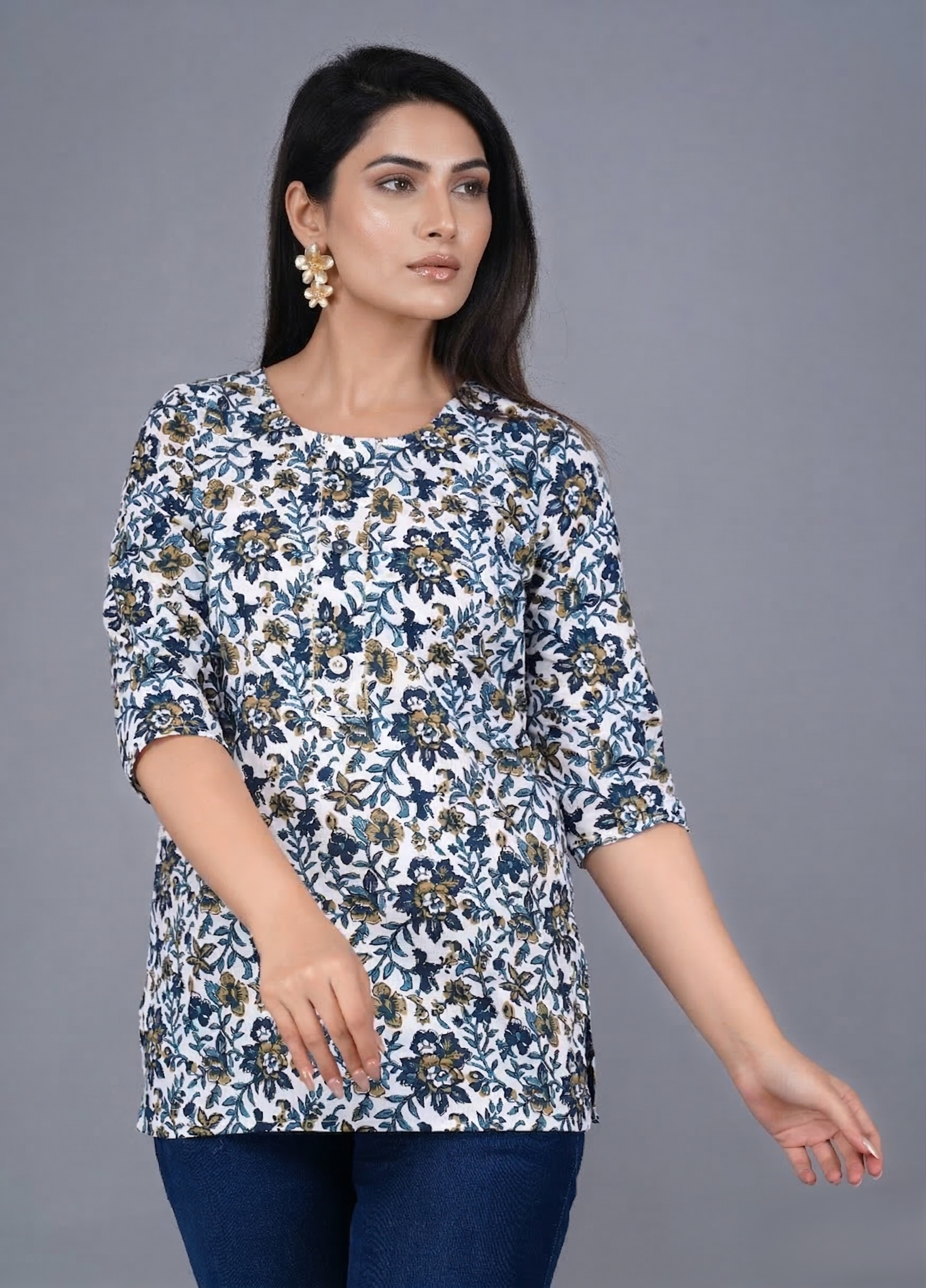 Step into effortless elegance with our Blue Floral Cotton Top, designed for women who love a perfect blend of comfort and style. Crafted from soft and breathable cotton fabric, this top ensures all-day comfort while keeping your look fresh and stylish.