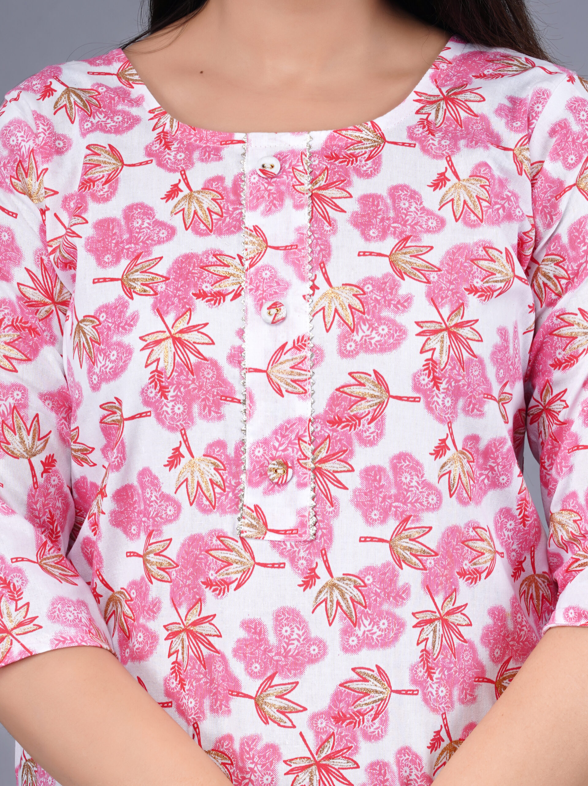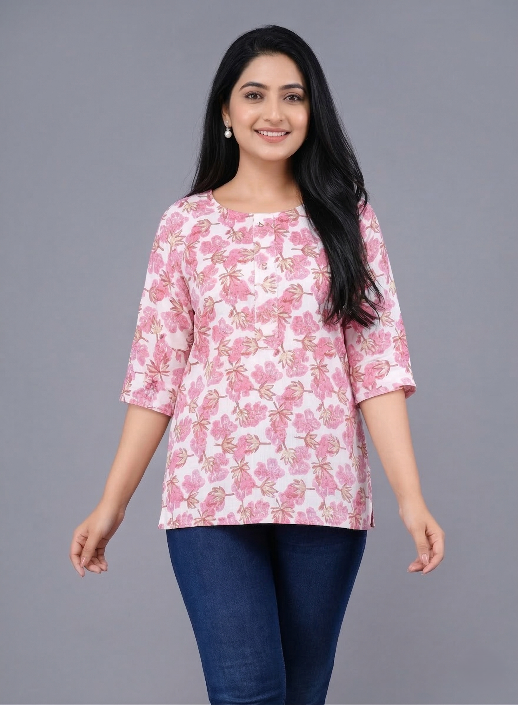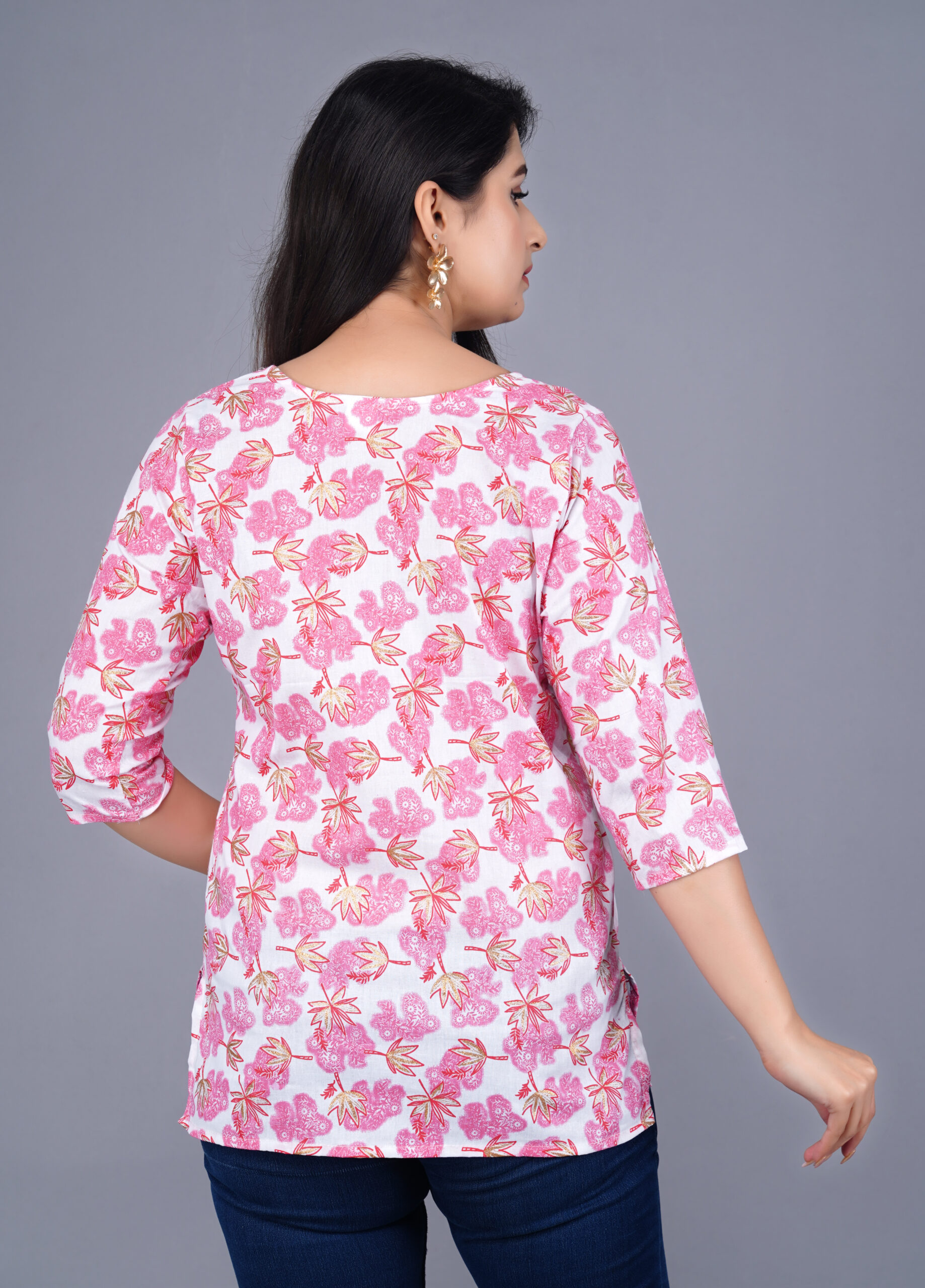 Refresh your wardrobe with our Pink Floral Cotton Top, a perfect blend of comfort and effortless elegance. Made from soft and breathable cotton fabric, this top keeps you cool and comfortable throughout the day while adding a stylish touch to your look.